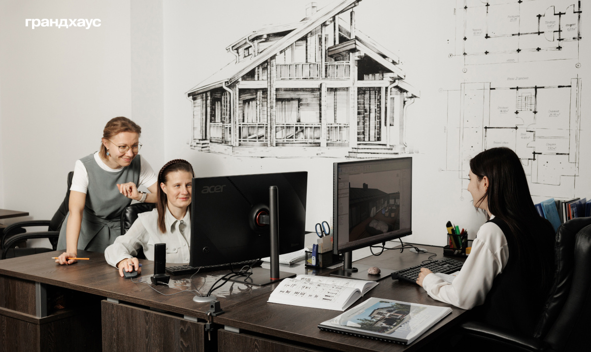 До того как за работу примутся наши проектировщики (на фото проектный отдел Грандхауса), клиенты общаются с нашими менеджерами.