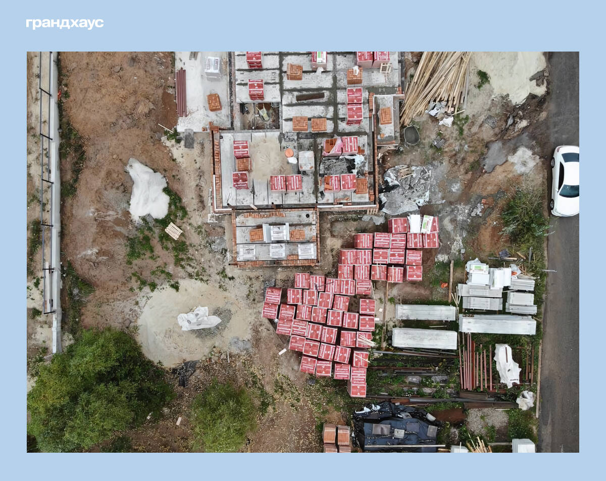 Складирование стройматериалов на объекте Грандхауса