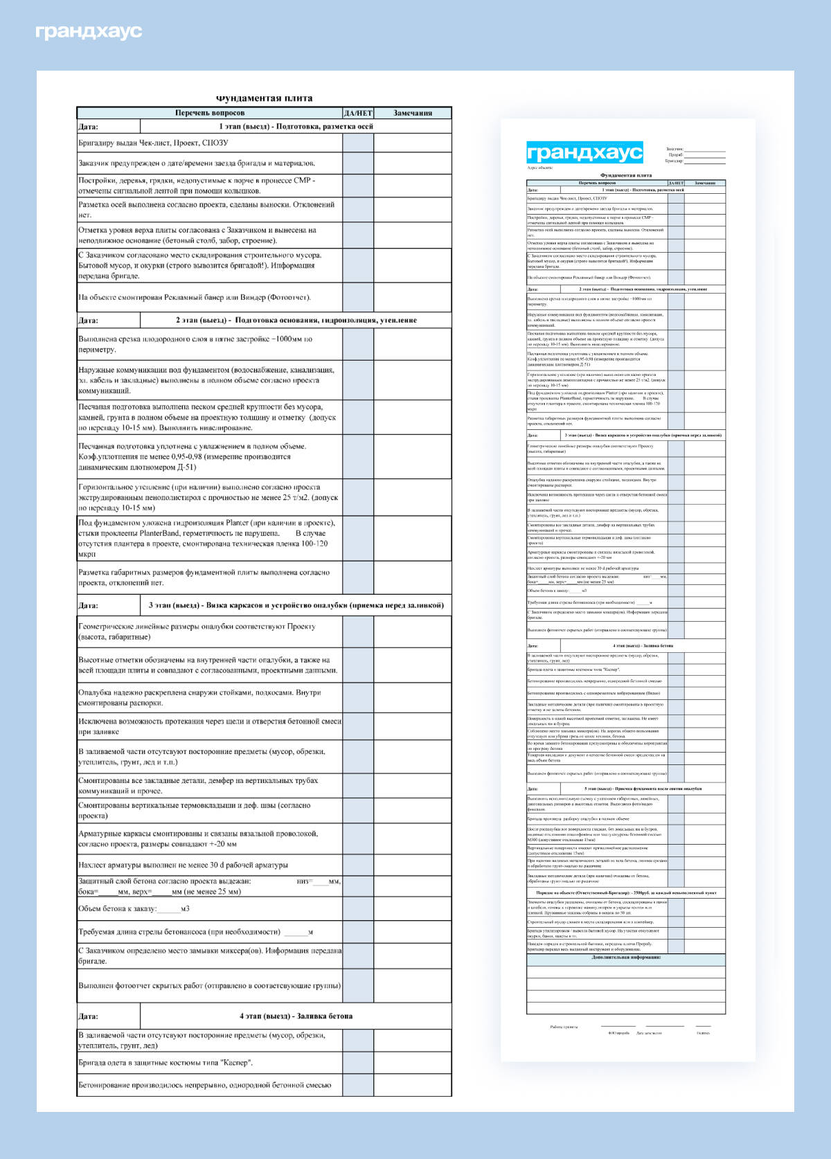 Вопрос технадзора - ключевой. На скриншотах: чек-листы, которые прораб заполняет на каждом этапе строительства. Также на каждом этапе заказчик подписывает акт приемки, а по окончанию стройки — заключительный акт