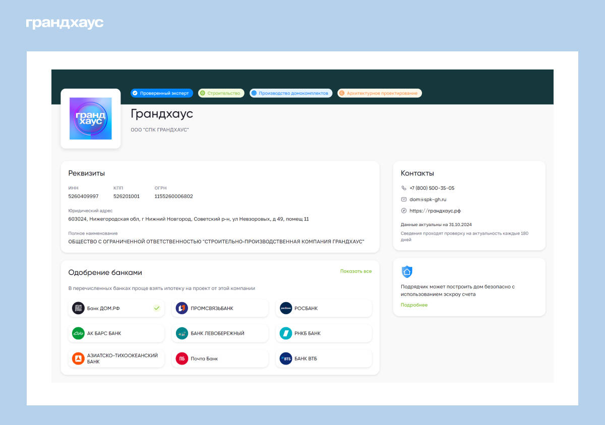 Открытые данные о Грандхаусе на сайте строим.дом.рф