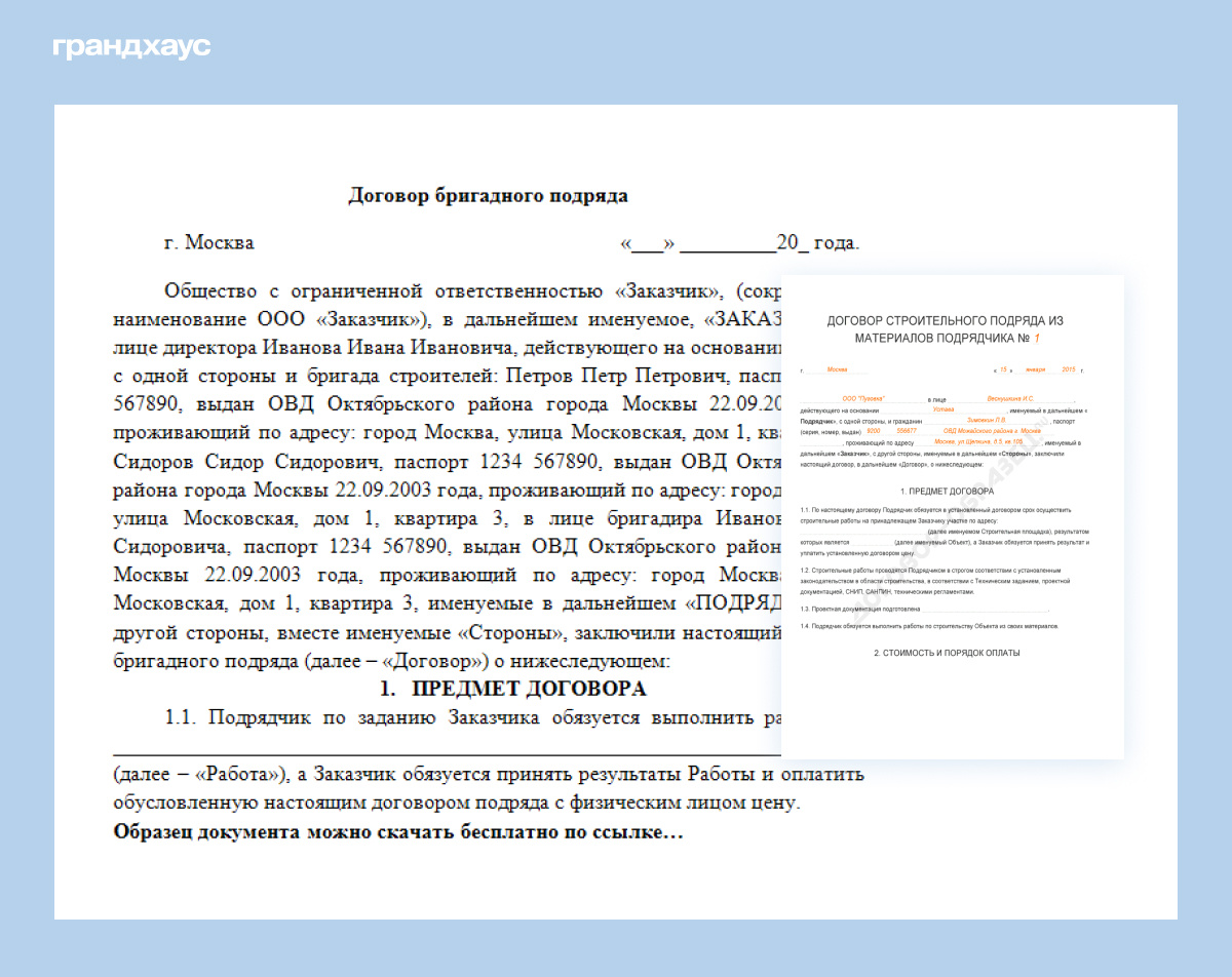 Образцы договора строительного подряда можно найти в интернете
