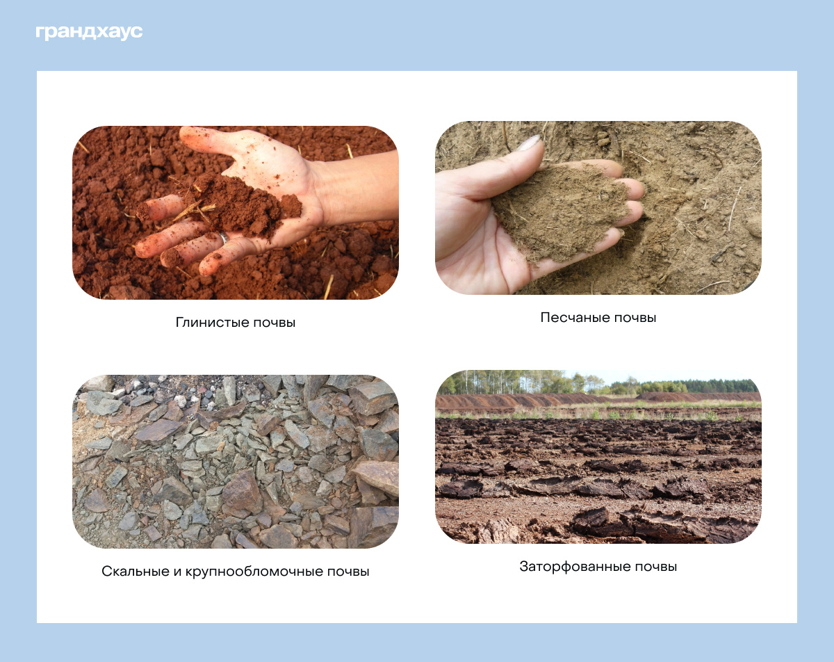 Скальные и крупнообломочные. Состоят из обломков кристаллических и осадочных пород. С ними меньше всего проблем, но в наших краях такой грунт встречается редко.
